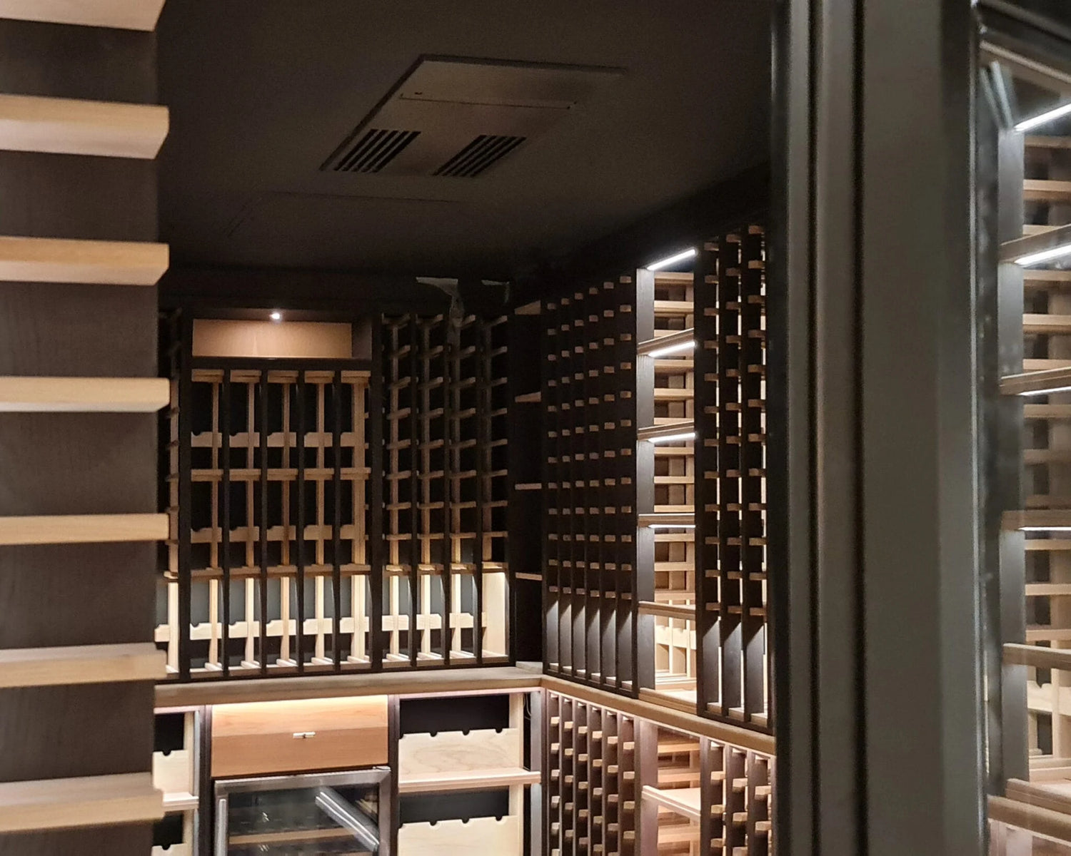 Klimasystem für maßgeschneiderte Weinvitrinen und kleine Weinkeller