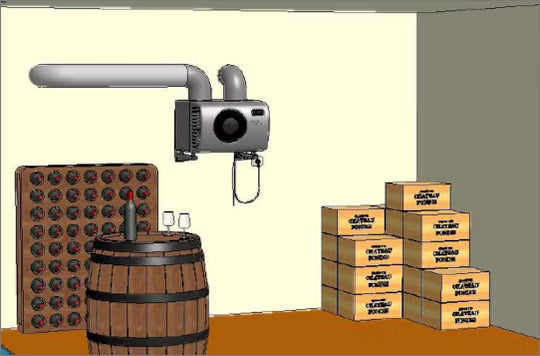 Die Winemaster IN25 ist für die vollständige Klimatisierung eines gut isolierten Weinkellers bis maximal 25 m³ geeignet. Das bedeutet, dass das Gerät 24/7 belüftet, bei Bedarf kühlt oder heizt und die Luftfeuchtigkeit reguliert.
