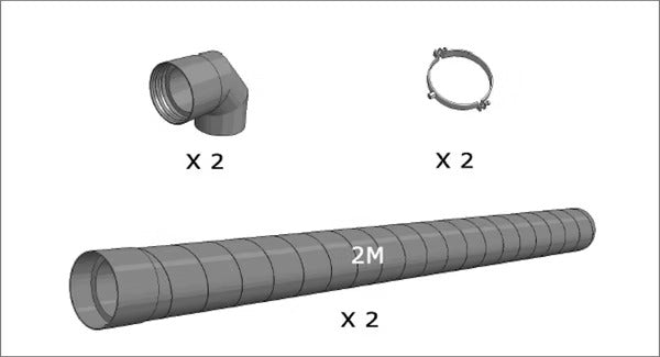 2 isolierte, flexible Luftkanäle à 2 Meter Länge